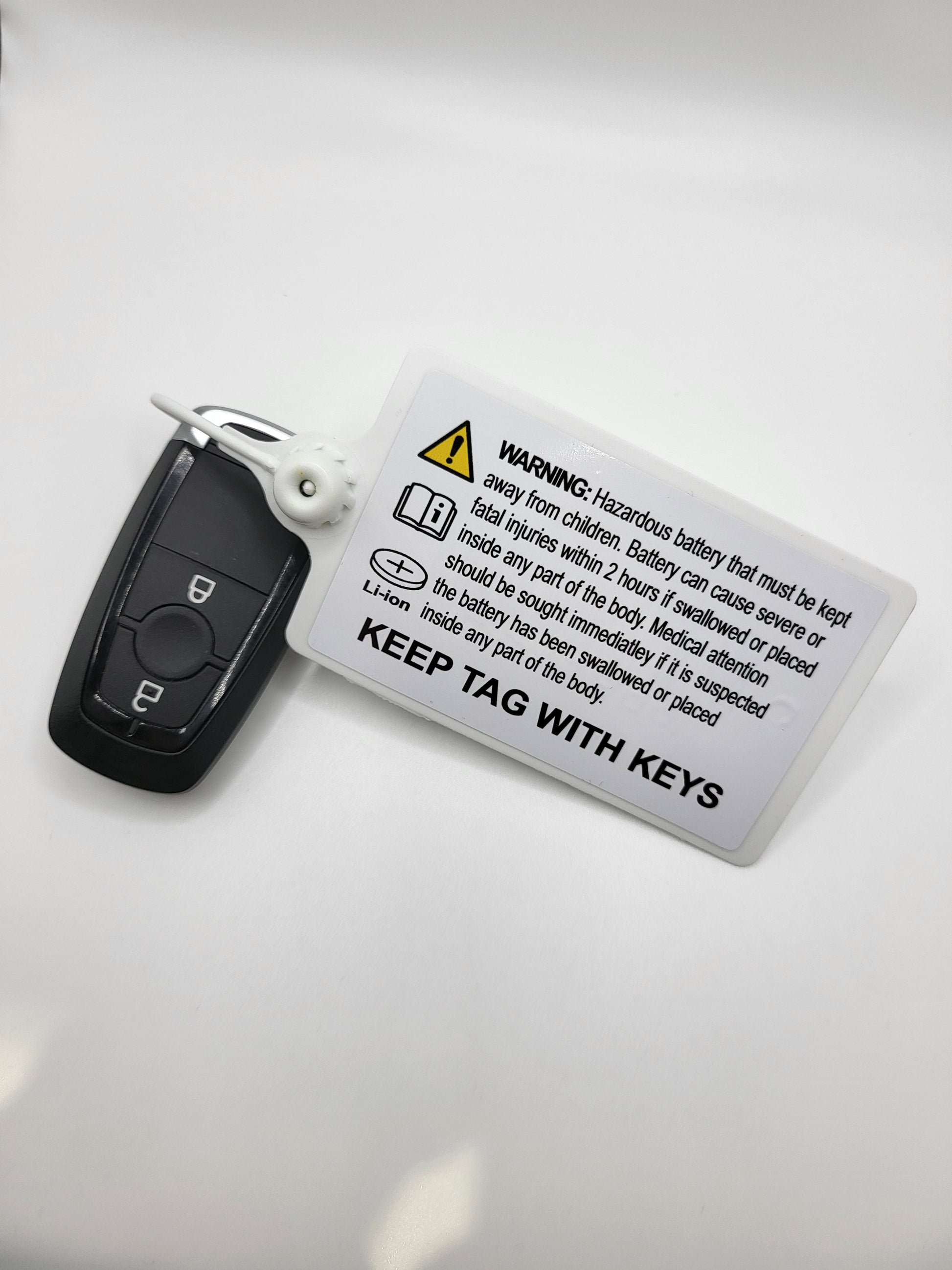 Button Battery Warning Label - For use on vehicle keys as required by Australian Law.