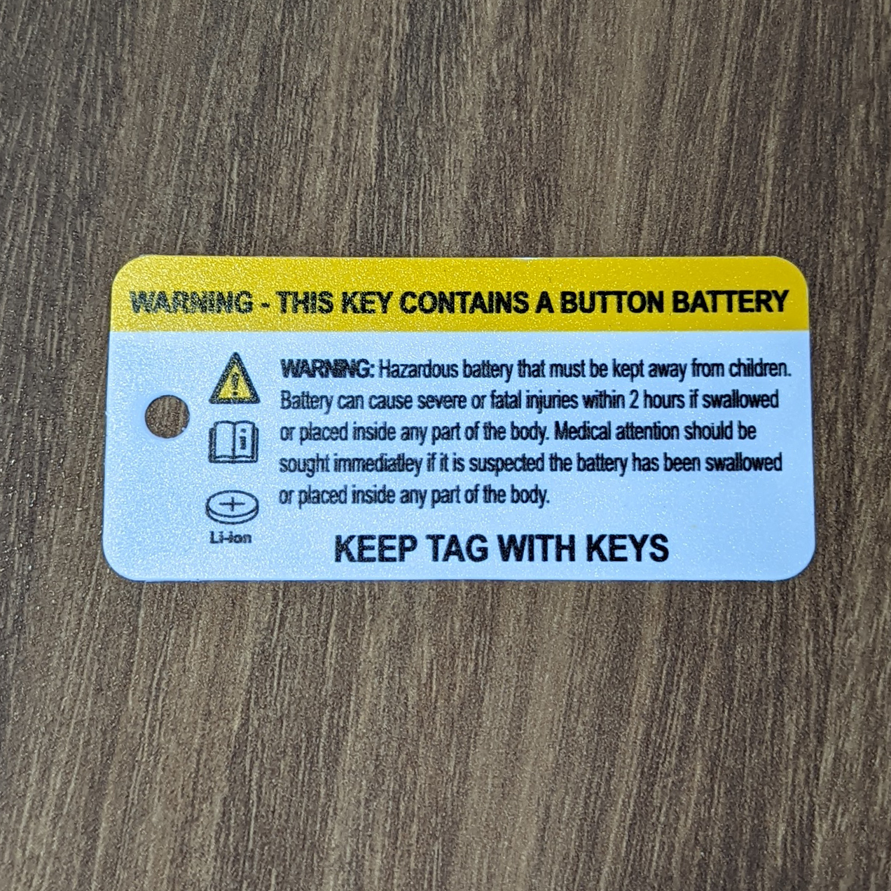 Button Battery Warning Tag for Keys & Stock Label with Key Ring